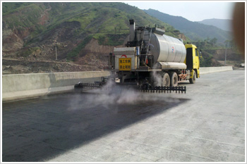 (4)防水層做完后,在瀝青混凝土鋪裝層未上以前要嚴(yán)加保護,防水層實干后,可在其上開行10t以下汽車,但不得在其上打彎,倒車,急剎車等。10t以上的貨車,鏟車、吊車等禁止通行。