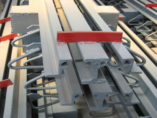3.要與設計圖和現(xiàn)場核對位置、尺寸無誤后,再將公路橋梁伸縮縫在安裝前穩(wěn)放入預留槽。要將橋上各接縫處縫隙一定要用聚苯乙烯泡沫板塞嚴,防止?jié)沧⒈Wo帶混凝土時灌入,使縫失效。同時,也不可將裝置內(nèi)灌進混凝土,以免更換V形象膠帶時受阻。