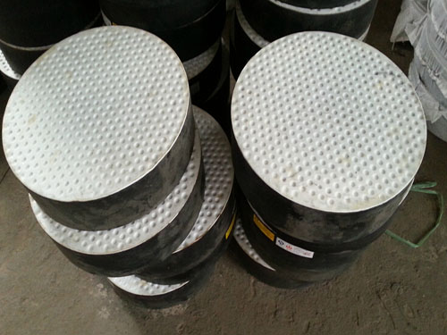 (一)特點(diǎn):本產(chǎn)品是于普通板式橡膠支座上粘接一層厚1.5-3mm的聚四氟乙烯板而成。除具有普通板式橡 膠支座的豎向剛度與彈性變形,能承受垂直荷載及適應(yīng)梁端轉(zhuǎn)動(dòng)外,因四氟乙烯與梁底不銹鋼板間的低磨擦 系數(shù)(μ≤0.08)可使橋梁上部構(gòu)造的水平位移不受限制。
